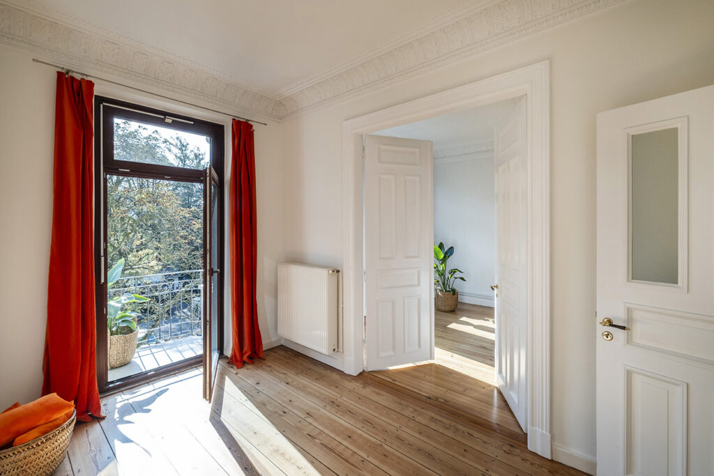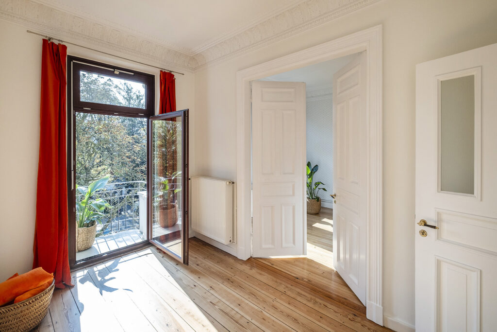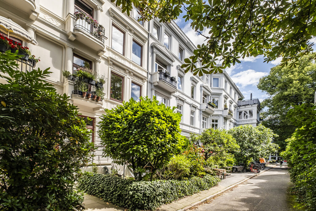 Mitten im feinen Stadtteil Hamburg-Rotherbaum, erwartet Sie diese außergewöhnliche Wohnung. Sie befindet sich im zweiten Obergeschoss eines um 1889 erbauten Mehrfamilienhauses (kein Denkmalobjekt) mit insgesamt 9 Wohnungen in einer versteckten, ruhigen Anliegerstrasse. Und nur einen idyllischen Spaziergang durch die Milchstrasse entfernt, führt der Weg vorbei an historischen Häusern und Remisen wo einst Jil Sander und Joop arbeiteten und lebten – direkt zur Außenalster.Ein Wohngefühl wie in Paris – Mit Blick zur St. Johannis Kirche, den lichtdurchfluteten Räumen und den liebevoll restaurierten Jugendstil-Elementen, verbindet diese Wohnung klassisches Flair mit modernstem Wohnkomfort. Einzigartig, charmant, saniert. Diese stilvolle 3,5 Zimmer Jugendstil-Wohnung im Herzen von Pöseldorf verbindet die Eleganz der damaligen Epoche mit heutigem modernen Wohnkomfort. Hochwertige breite Dielen aus siebirischer Eiche, originale Türen mit edlen Beschlägen, hohe Decken mit ornamentreich opulentem Original-Stuck, eine hochwertige Einbauküche mit Blick zur St. Johannis Kirche und der Balkon mit Ausblick ins nachbarschaftliche Quartier.Eine seltene Gelegenheit bietet sich, in einer der charmantesten Lagen Hamburgs, in Pöseldof, nur einen Spaziergang von der Alster entfernt in bester Lage zu Wohnen!