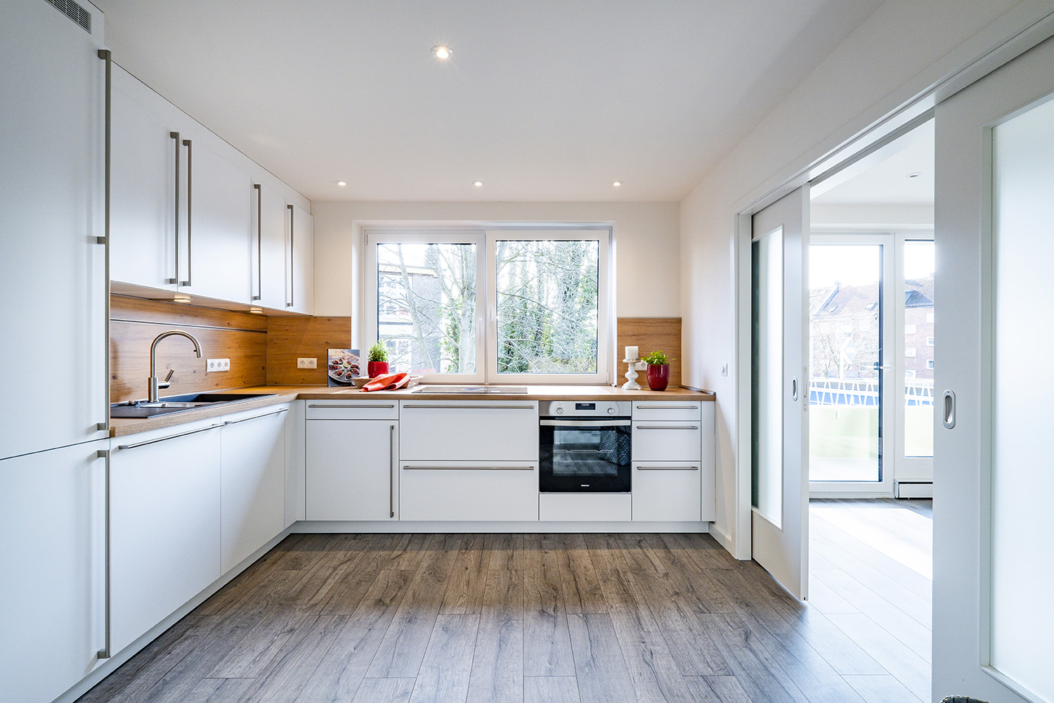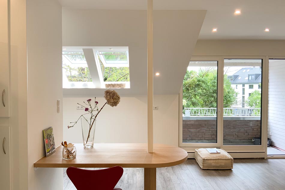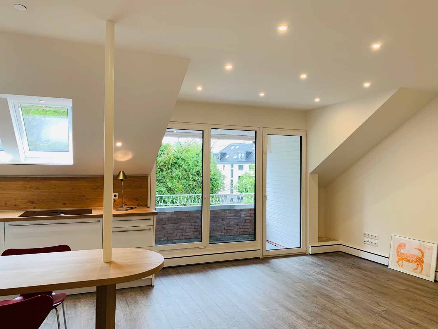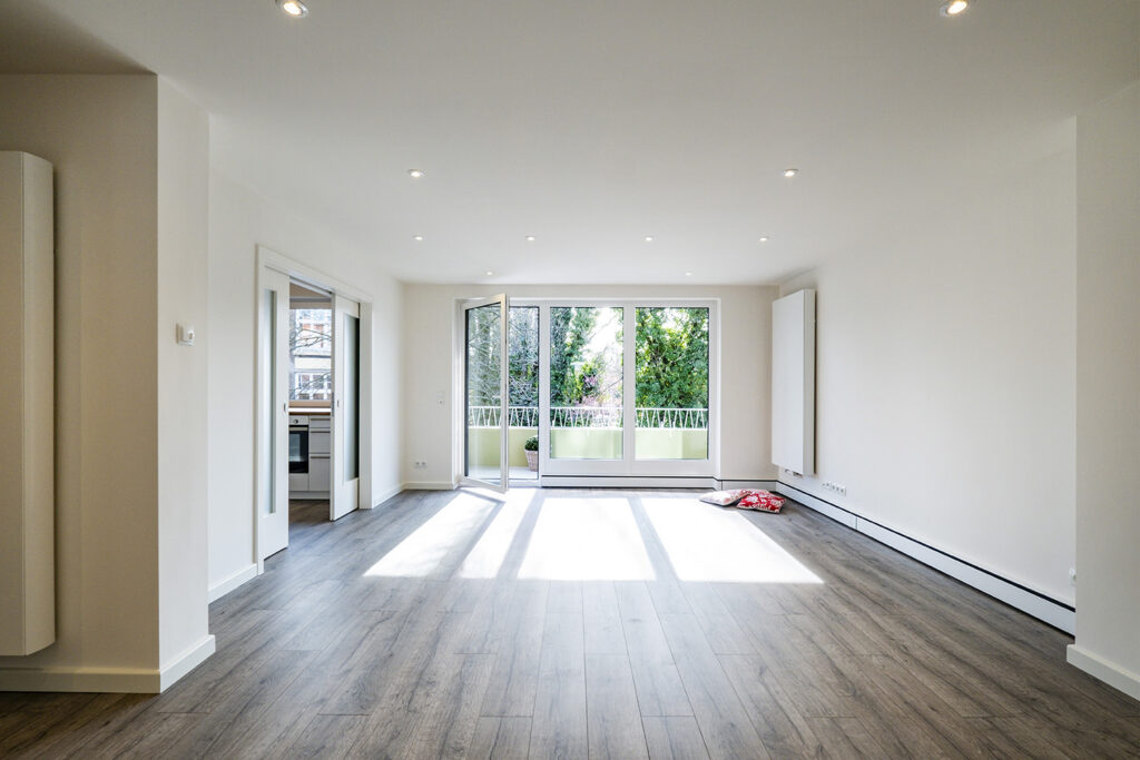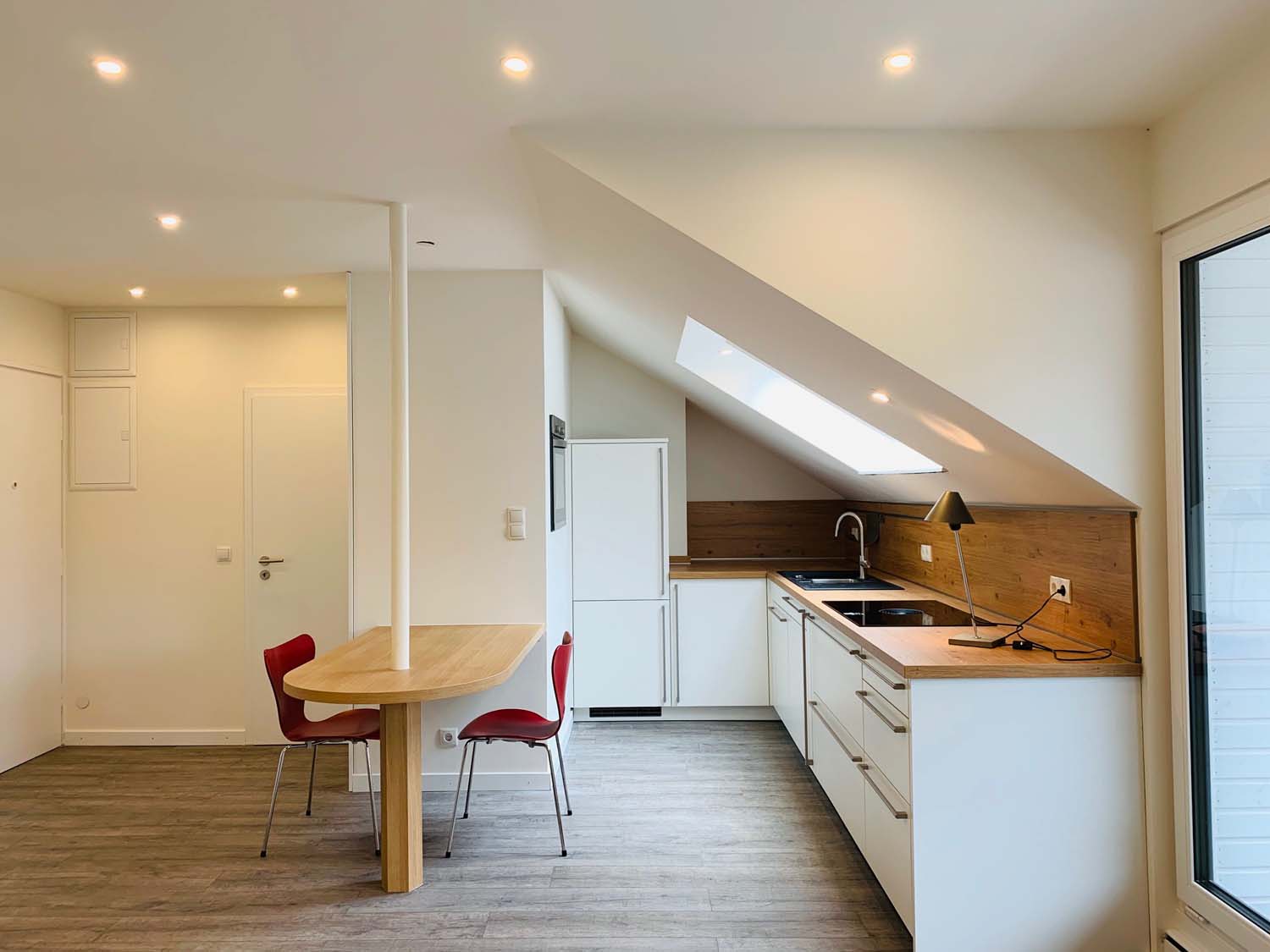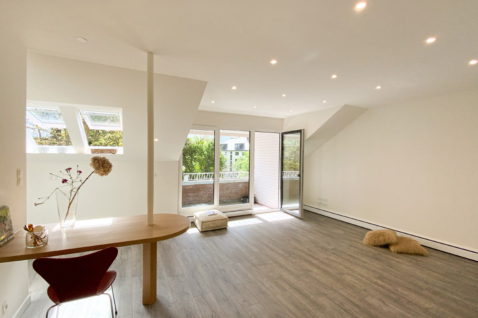 Saniertes Wohnhaus mit vier Wohnungen. Die Erdgeschosswohnung mit Terrasse und Gartenzugang. Die Wohnungen im 1. und 2. Obergeschoss haben einen Balkon, die Dachgeschosswohnung eine entzückende Loggia. Neue Grundrisse, verputzte Wände, hochwertige Sanitärausstattung, Dach, Elektrik, Designböden, massangefertigte Küchen, Sockelfussheizung und anthrazitfarbene ISO Fenster 3-fach Verglasung. Neue Abstellräume für die Mieter im Keller. Der Aussenbereich wurde gärtnerisch gepflastert und neu angelegt. Die Kellertür wurde verbreitert und ein neues Türelement eingesetzt, sodass die Fahrräder bequem über die neue Rampe in den grosszügigen Fahrradkeller gelangen können.